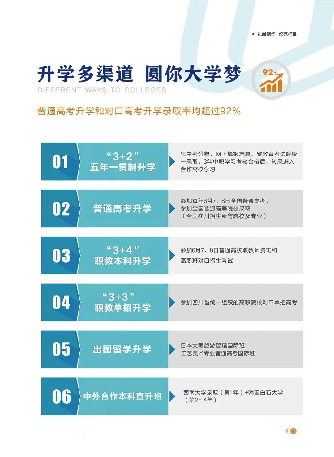 学校最大亮点是:升学多途径,就业高品质。