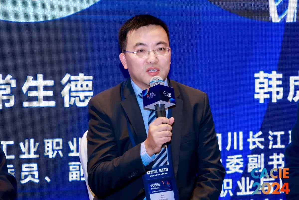 在当日举行的“央企赋能探索职教出海产教融合新路径” 平行论坛上,四川长江职业学院党委副书记、校长,川港职业与应用教育联盟(川方)秘书长韩虎,受邀分享了学校“探索‘1+N’川港职业教育产教融合新模式,服务四川职业教育高水平对外开放”的经验和做法。