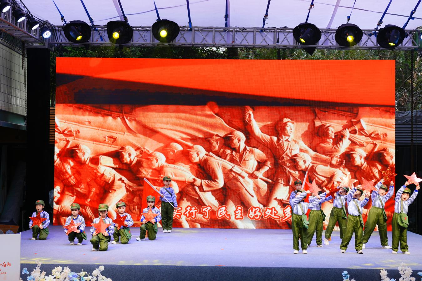 此次音乐思政课以艺术为桥,巧妙地将党史、国史与园史融为一体。幼儿园师生相继表演了《没有共产党就没有新中国》《春天的故事》等红色歌舞;《长大后我就成了你》《不忘初心》《七秩东府,创见未来》等节目,生动诠释了幼儿园进入新时代后,在党建引领下获得的全国三八红旗集体等多项荣誉背后的坚守与追求,表达了继往开来的决心。