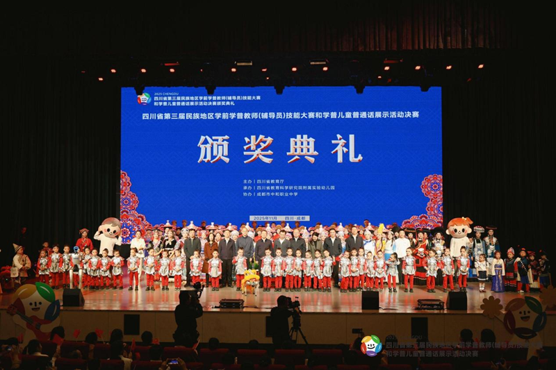 11月16日,四川省第三届民族地区学前学普教师(辅导员)技能大赛暨学普儿童普通话展示活动颁奖典礼在成都举行。省委教育工委书记、教育厅党组书记陈冠松出席颁奖典礼并讲话。