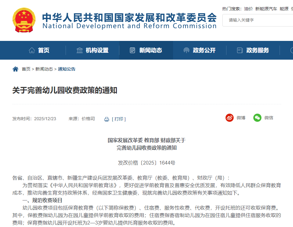 近日,国家发展改革委、教育部、财政部三部门发布《完善幼儿园收费政策的通知》,对幼儿园收费项目、管理方式、制定原则、监管机制等作出全面规范。