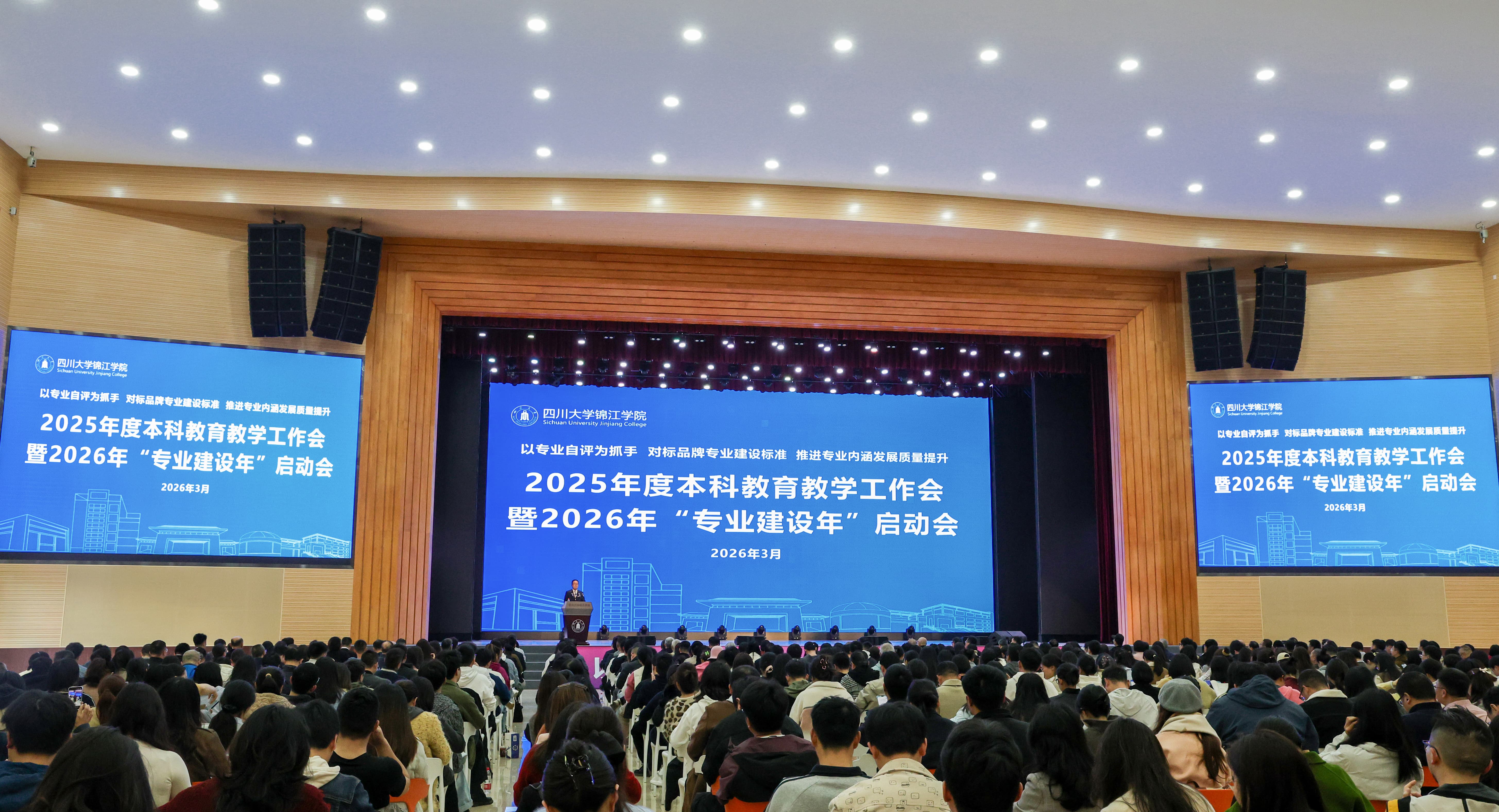 四川教育发布 2026-03-1345243月11日,四川大学锦江学院召开“以专业自评为抓手,对标品牌专业建设标准,推进专业内涵发展质量提升”为主题的2025年度本科教育教学工作总结会暨2026年“专业建设年”启动会。会议深入贯彻落实2026年全国、全省教育工作会议精神,系统总结2025年本科教育教学工作成效,深刻分析高等教育发展新形势新任务,全面部署2026年“专业建设年”重点任务,动员全校上下进一步统一思想、凝聚共识,以专业建设为突破口,谋局定向,奋力推动学校内涵式发展迈上新台阶。