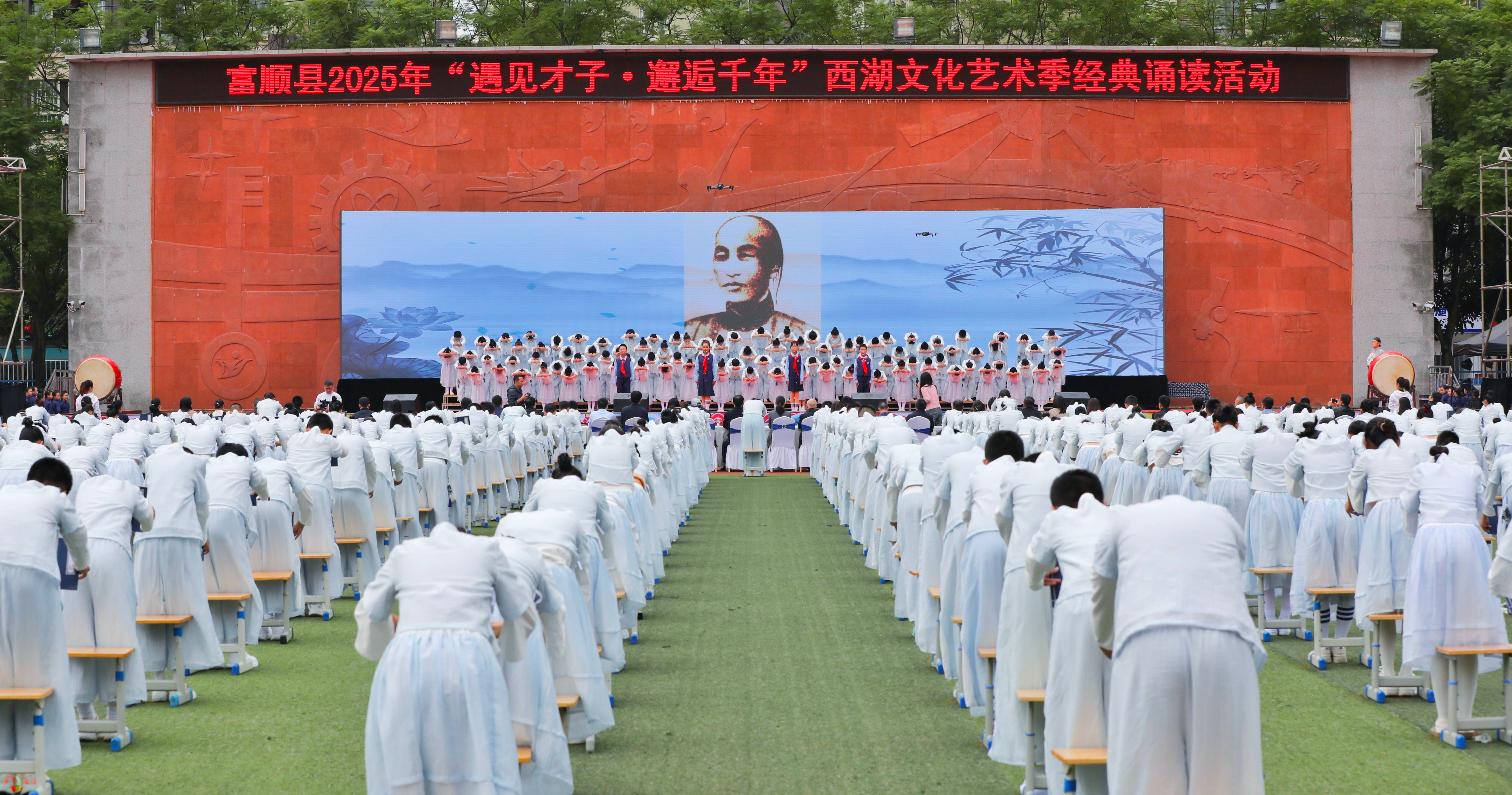 近日,自贡市富顺县2025年西湖文化艺术节“百善孝为先・礼遇重阳节”经典诵读活动在北湖实验学校举行。活动旨在以经典之声唤醒文化记忆,以孝德之韵涵养社会新风,共计1500余人共同参与。
