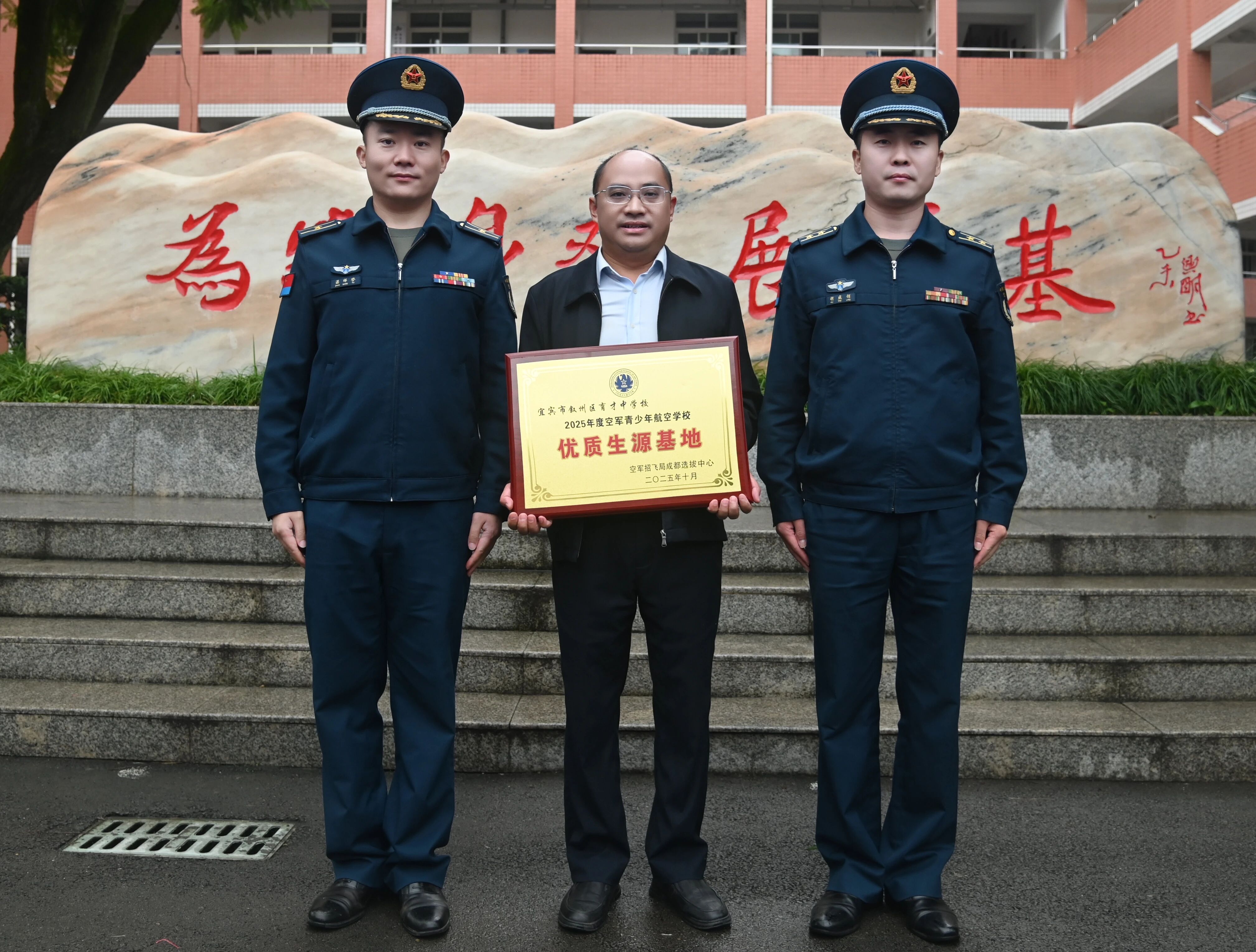近日,宜宾市叙州区育才中学被空军招飞局成都选拔中心授予“2025年度空军青少年航空学校优质生源基地”。