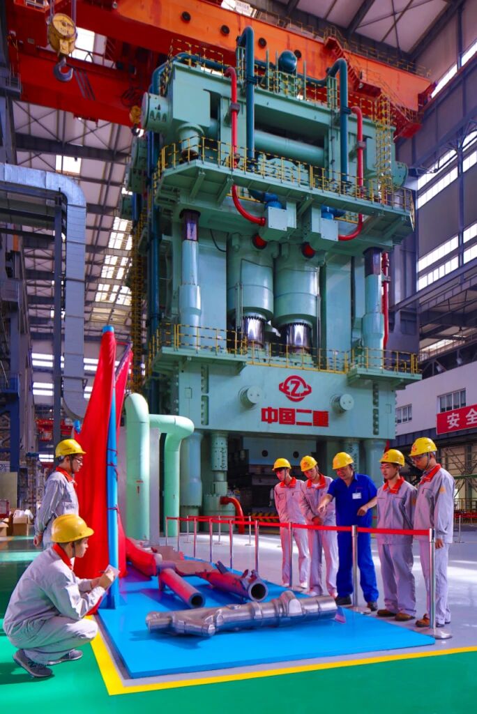四川工程职业技术大学学生正在学习8万吨模锻压机操作。