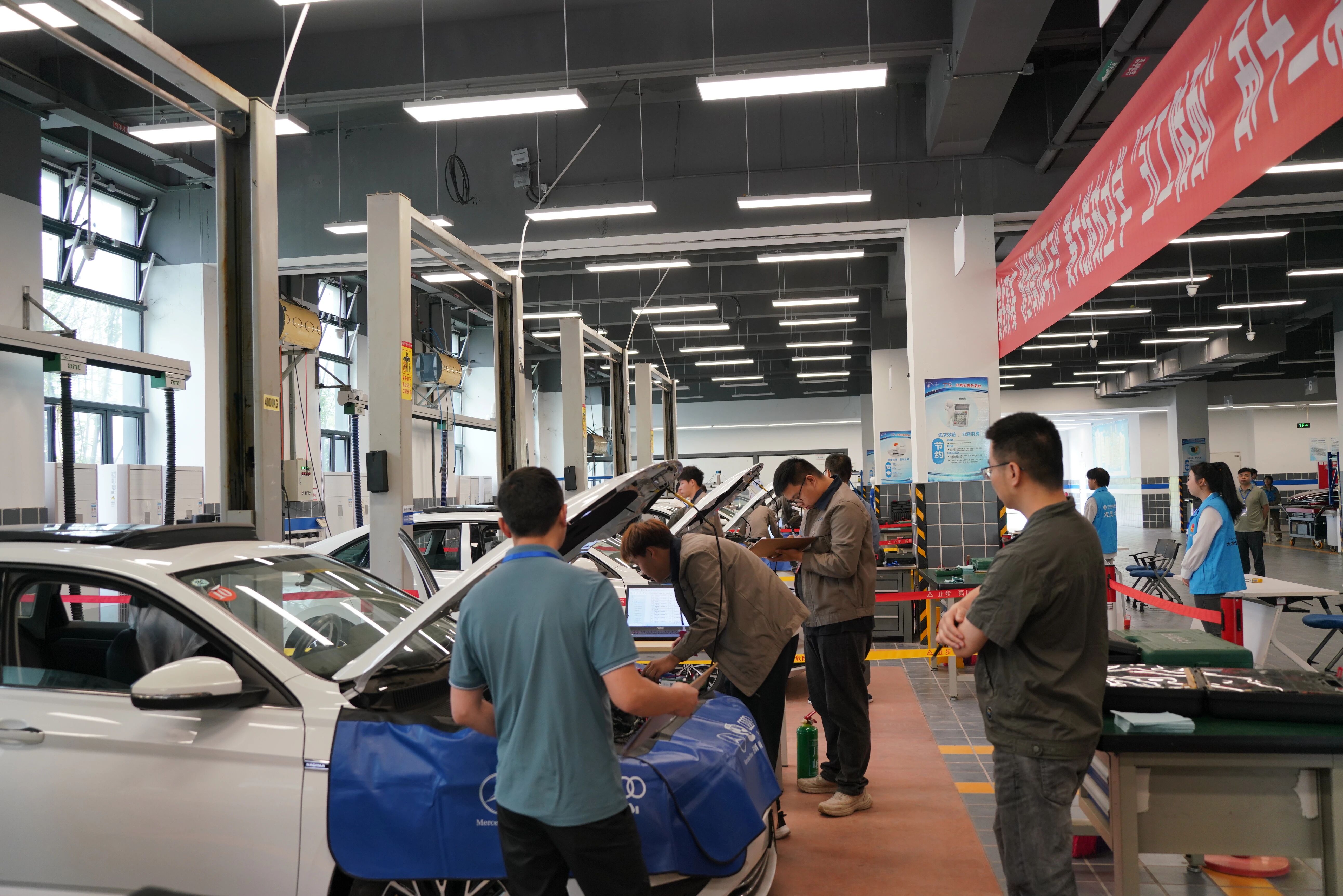 宜宾职业技术学院汽车与轨道交通学院的学生正在进行实训。