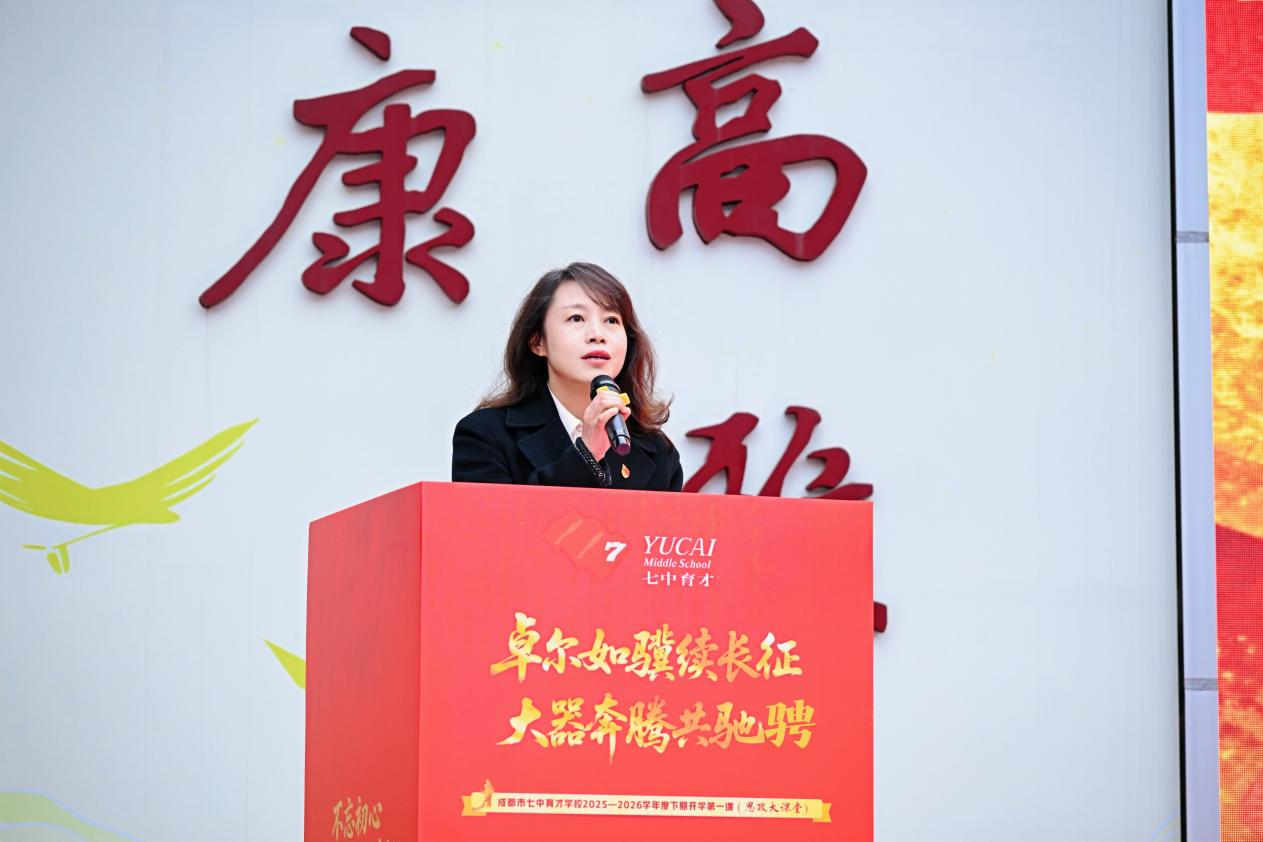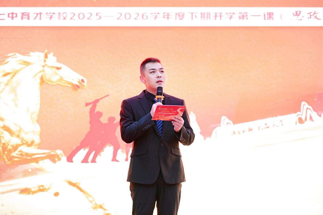 3月2日,成都市七中育才学校以“卓尔如骥续长征,大器奔腾共驰骋”为主题,举行2026年春季学期开学第一课。活动通过“迎春马”“长征马”“育才马”三重精神意象,将马年奋进寓意与长征精神融合,为全校师生带来一堂生动的思政课。