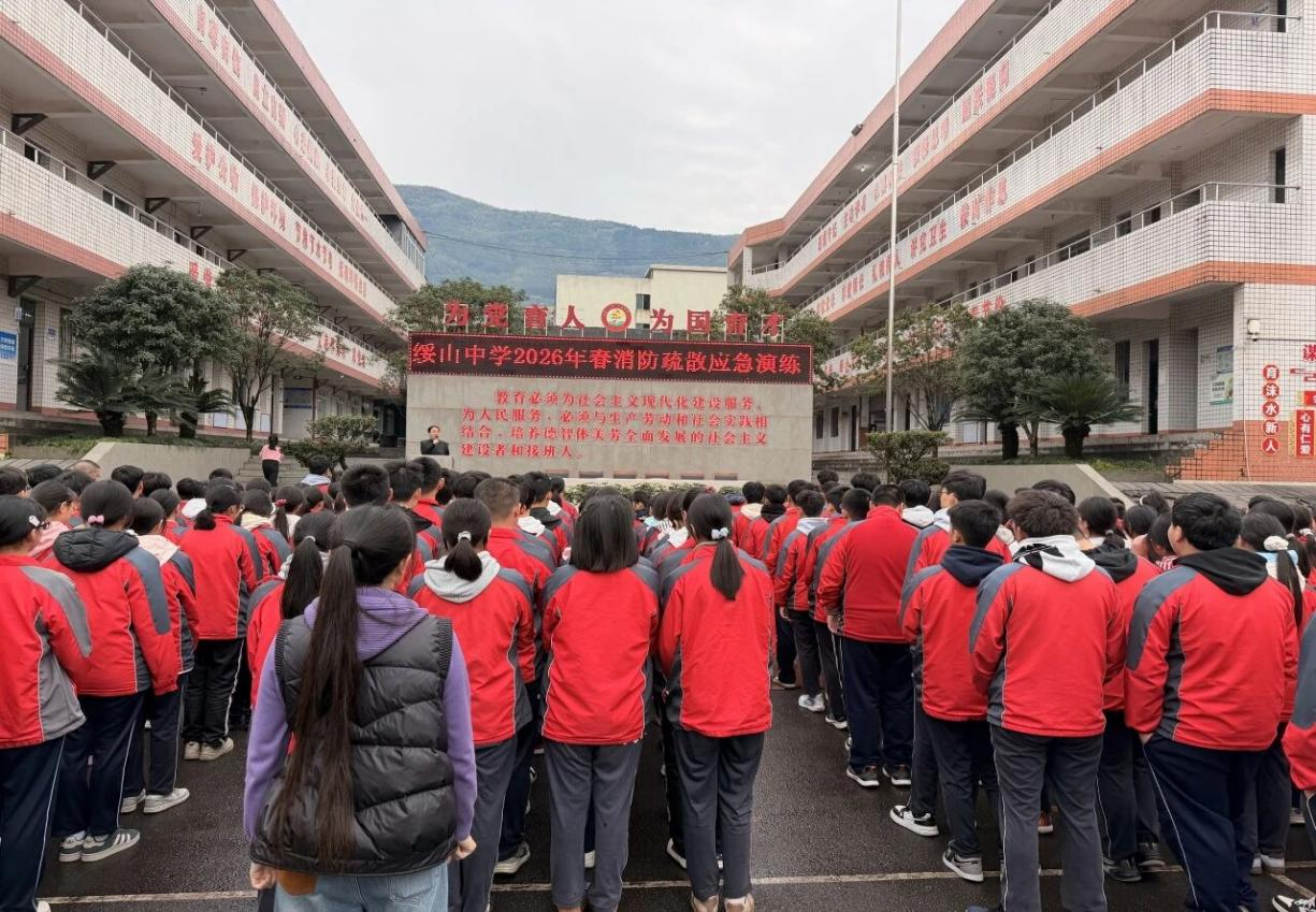 3月2日,乐山市沙湾区绥山中学组织全体师生开展消防应急疏散演练,以实战化演练筑牢校园安全防线。