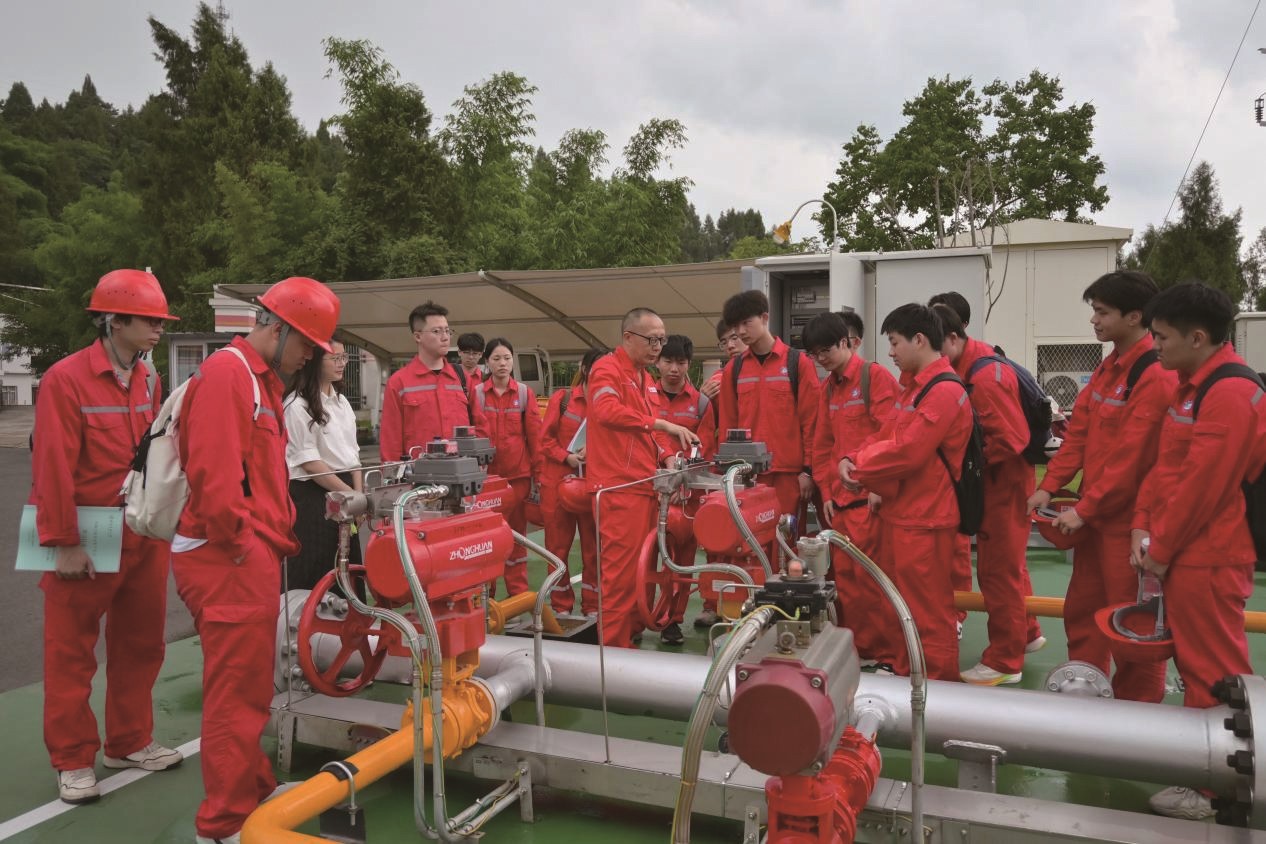 “两千年前,我们的祖先用竹管输送天然气煮盐;今天,学生们设计的智能管网正在地下蜿蜒。”在位于邛崃市火井古镇的“世界第一井”——汉代临邛火井遗址,20余位硕士生、博士生跟着辅导员进行现场学习,他们在川西北气矿邛崃作业区集气中心总站投入顶岗实习,沉浸式体验了生产岗位的真实节奏与技能需求。