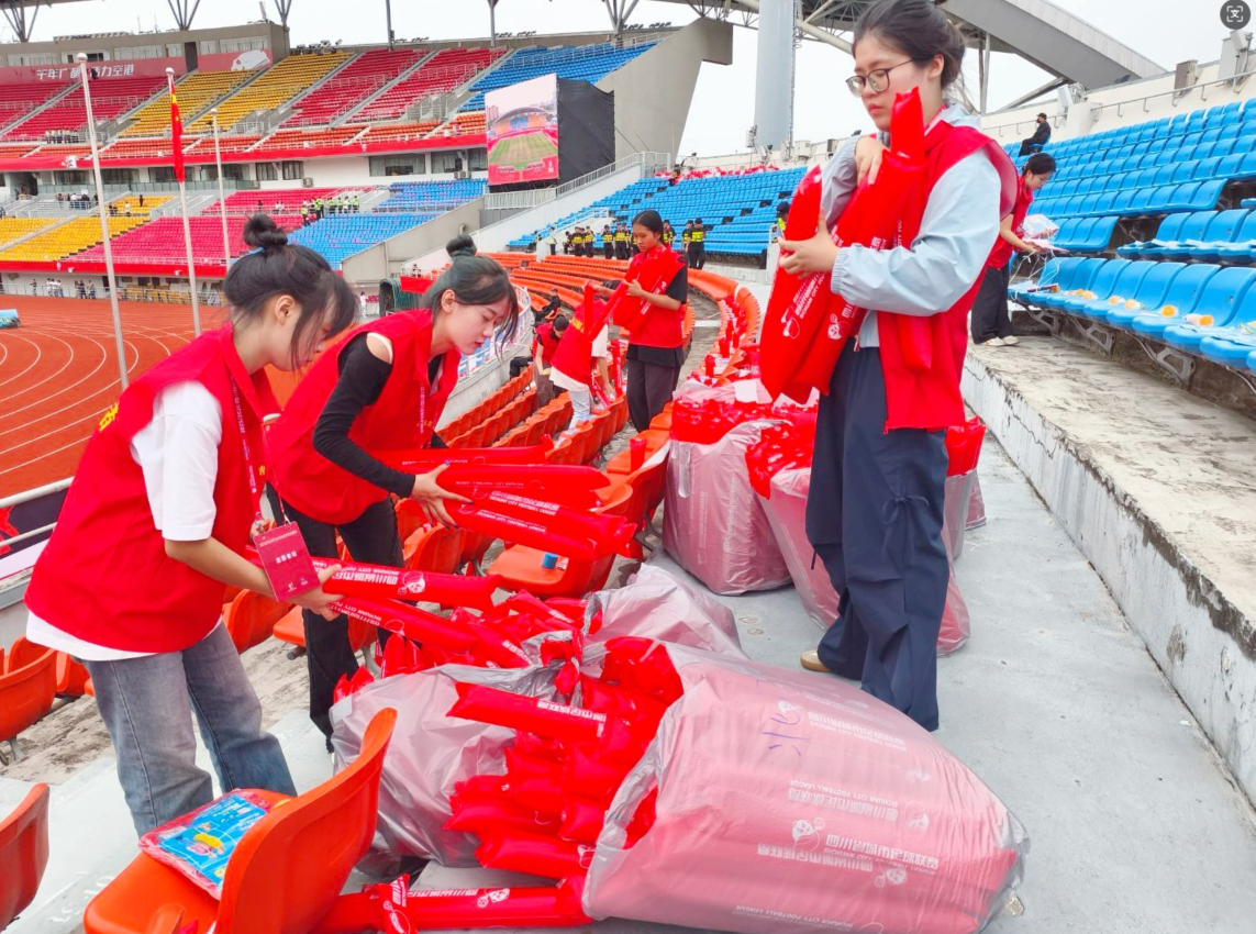 近日,2025-2026赛季四川省城市足球联赛(简称“川超联赛”)在双流体育中心正式开幕。四川现代职业学院共组织172名青年志愿者为赛事提供志愿服务,从看台座椅物资发放、入口安检验票,到指引、秩序维护,他们耐心细致,贴心服务,用热情保障观赛体验,以行动诠释志愿精神。