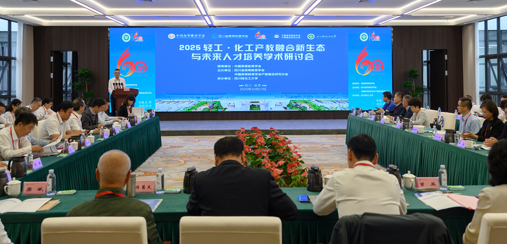 10月17日,“2025轻工・化工产教融合新生态与未来人才培养学术研讨会”在四川轻化工大学李白河校区盐都音乐厅315会议室举行。本次研讨会由中国高等教育学会指导,四川省高等教育学会、中国高等教育学会产教融合研究分会联合主办,由四川轻化工大学承办,来自全国轻工、化工领域专家学者和企业代表齐聚一堂,围绕“数智驱动・范式重构”主题,共商产教融合创新路径,共绘未来人才培养蓝图。