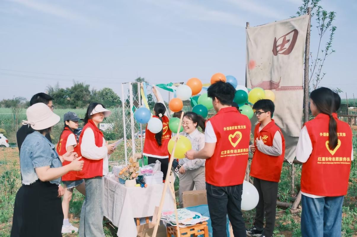 学院成立“师生共建”志愿服务队——“红星语传”志愿服务队,彰显党员教师“头雁效应”,构建“党建+专业服务”双融双促机制。以党建引领志愿服务,充分发挥语言专业优势;同时,立足社区与企业需求,提供英语培训、语言交流等多元化服务。