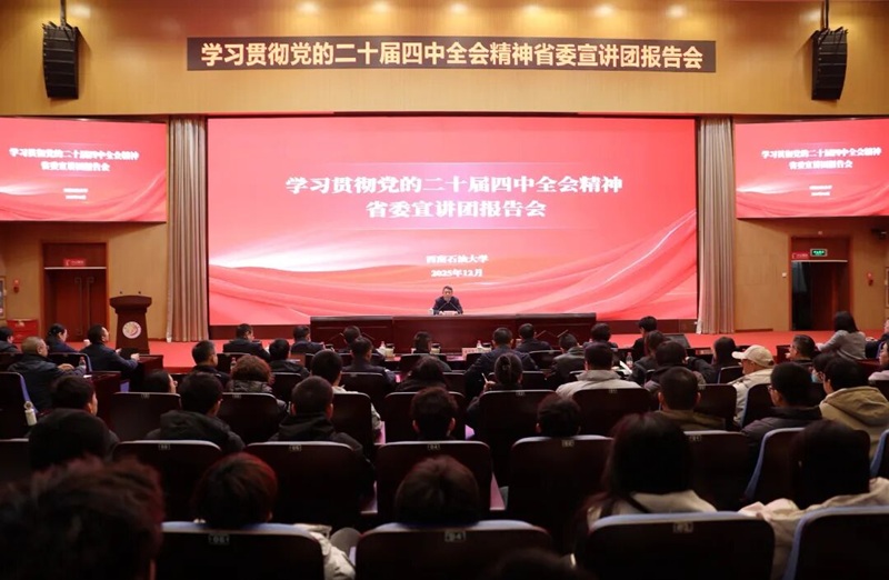 按照省委统一部署,12月12日,省委宣讲团高校分团负责人,省委教育工委书记,教育厅党组书记、厅长陈冠松到西南石油大学宣讲党的二十届四中全会精神。
