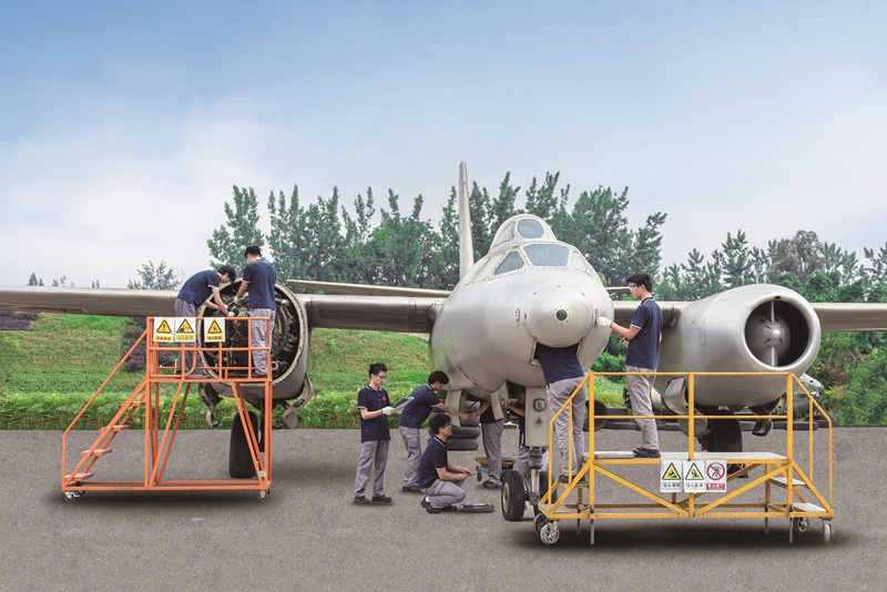 飞机机电设备维修专业学生开展飞机外场维修与维护实训。(图片由受访学校提供)