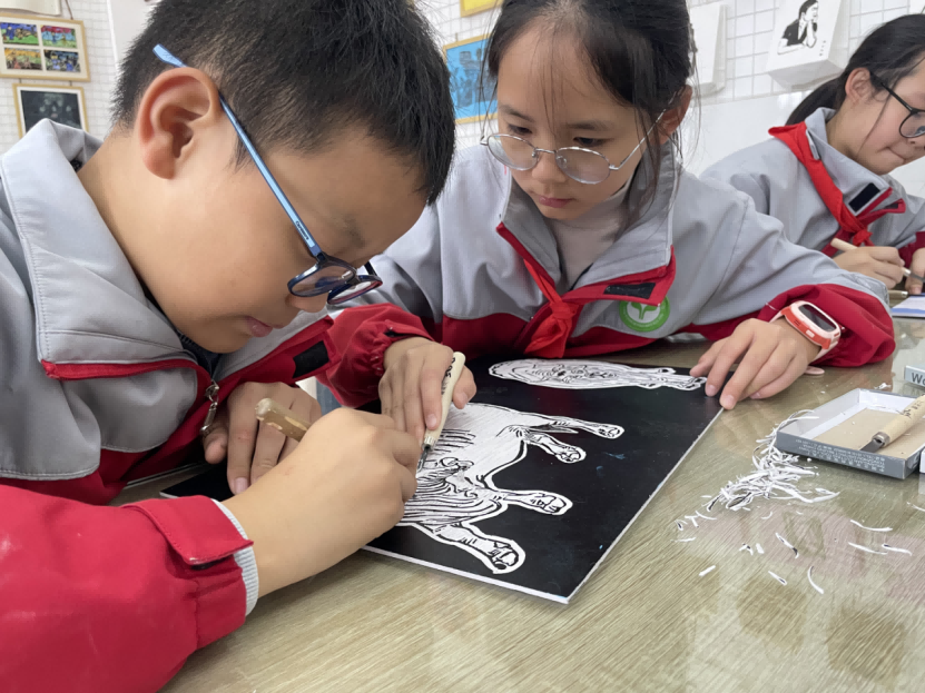 该校负责人表示,美育不是少数人的特长培养,而是要让每个孩子都能通过艺术表达生活。以版画为美育载体,借助可触摸的“刀与木”,让学生在动手创作中感知美、创造美,将本土文化与日常生活融入艺术创作。