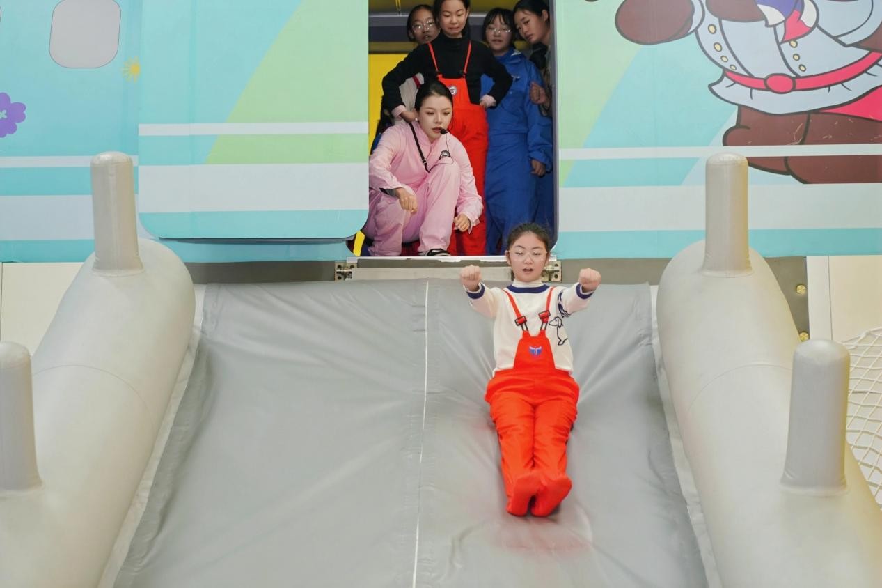 活动中,同学们化身“航空工程师”,360°观察波音737-300实体飞机,在导师讲解下探秘发动机与黑匣子原理。大家亲手设计制作航模,将理论融入实践,感受飞行智慧。沉浸式跳舱逃生训练中,同学们习得紧急避险技能,民航发展史科普课则展现了航空探索的精彩故事。