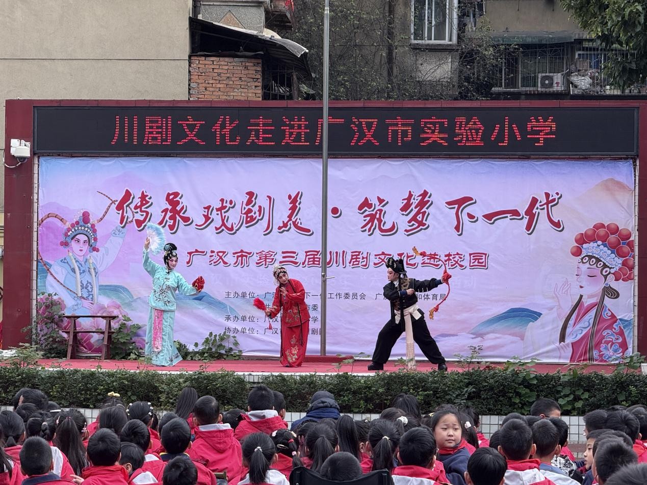 11月19日,德阳广汉市第三届“川剧文化进校园”走进广汉市实验小学,传承戏剧美,筑梦下一代。艺术家们为全校师生带来了一场精彩纷呈、内涵深厚的川剧艺术盛宴,让古老的巴蜀瑰宝在校园里焕发出新的活力。
