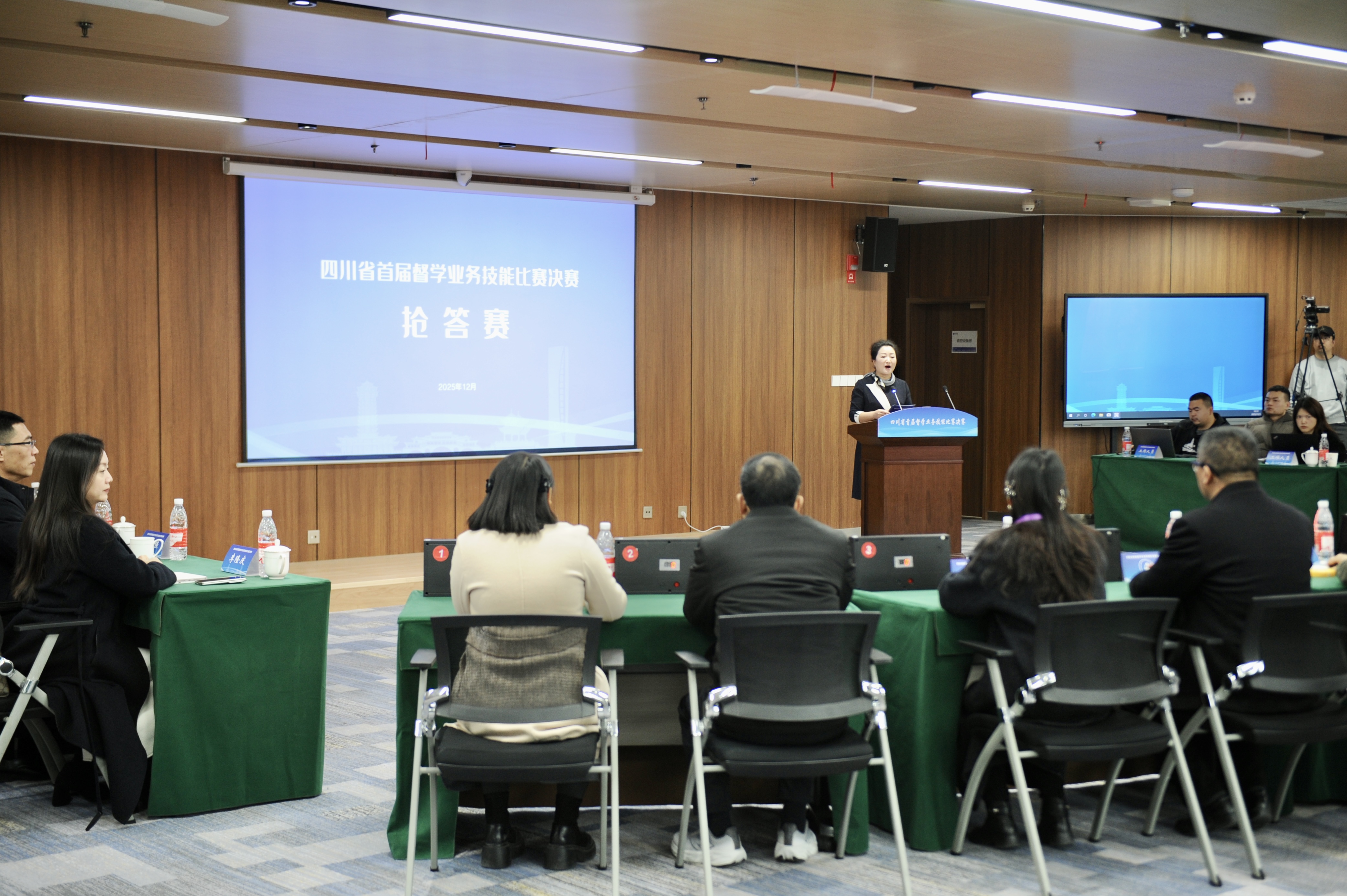 这是四川省首届督学业务技能比赛决赛现场的一幕。作为全国首个省级规模的督学技能赛事,此次决赛在初赛基础上遴选业务“尖兵”同台竞技,以科学的赛项设置与赛事安排,实现以赛促学、强能兴教。