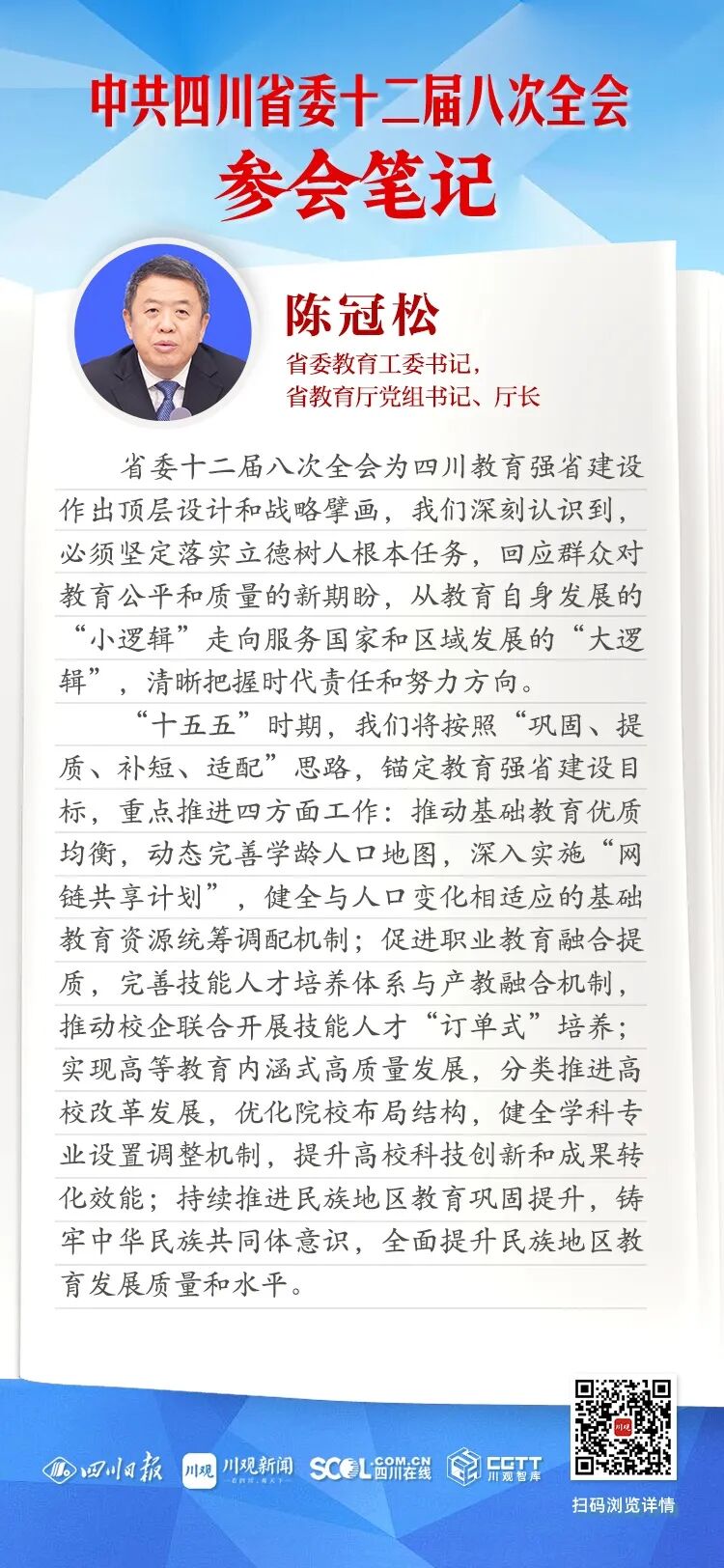 全会参会笔记丨省委教育工委书记,省教育厅党组书记、厅长陈冠松:紧扣“巩固、提质、补短、适配” ,加快建设教育强省